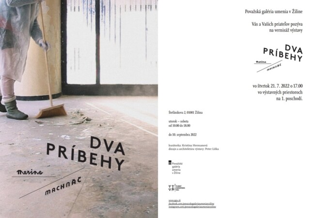 Výstavný projekt Dva príbehy: Machnáč a Merina dokumentuje umelecké aktivity a aktivizmus v záujme dvoch titulných objektov: Liečebného domu Machnáč v Trenčianskych Tepliciach a areálu bývalého textilného závodu Merina v Trenčíne.
